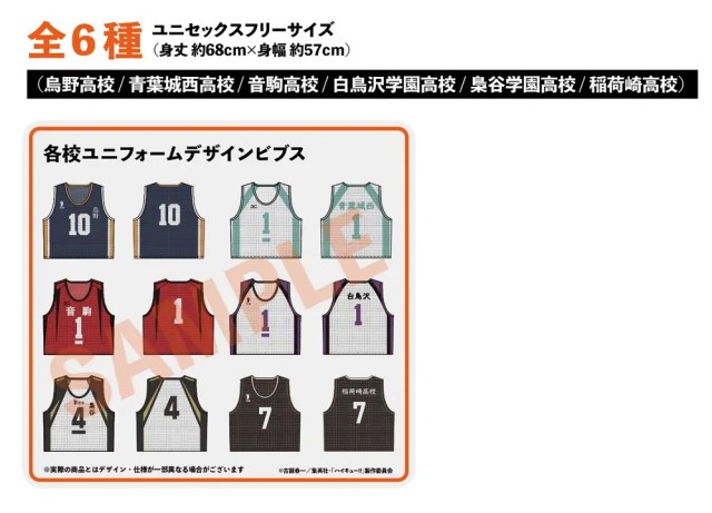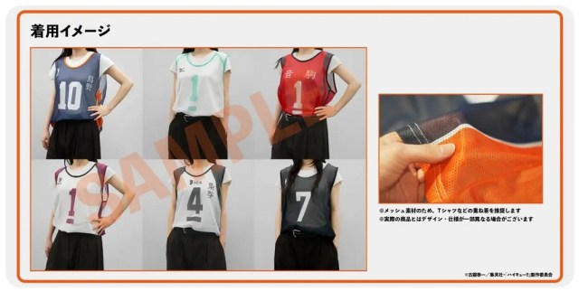 Adult admission is 2,000 yen (US$13), but if you really want to get into the spirit of stepping onto the Haikyu court, the 4,700-yen premium ticket gets you your choice of “uniform design bib,” a mesh tank top to be worn over a T-shirt recreating the jerseys of the Karasuno, Aoba Johsai, Nekoma, Shiratorizawa, Fukurodani, or Inarizaki high school volleyball teams.